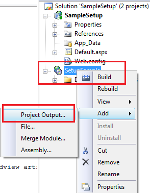 Step5: After add setup project open Solution Explorer ---> Right click on Setup project ---> Add ---> Project Output